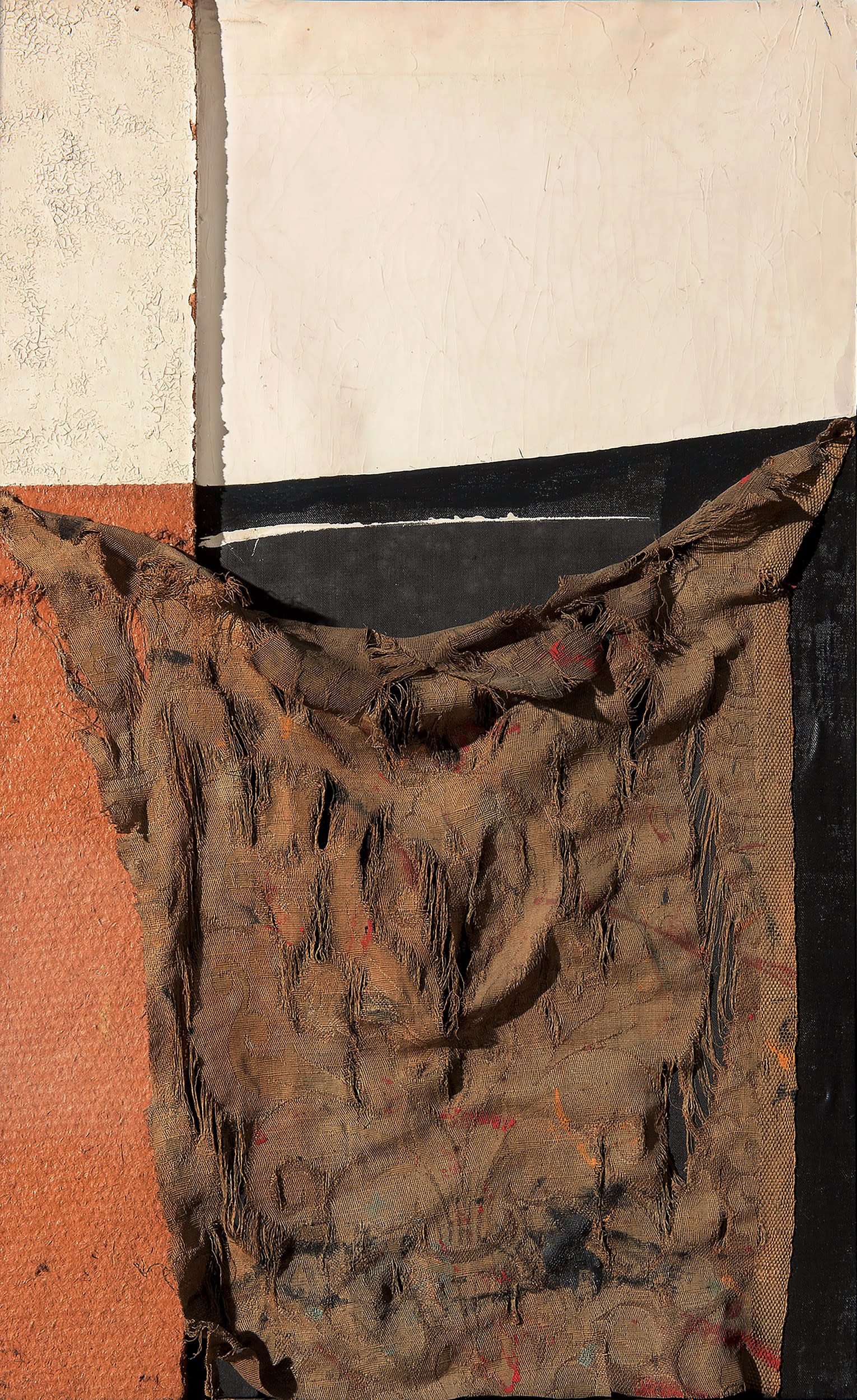 In 1949, a fragment of sack (SZ1) appeared for the first time, a theme that the artist would go on to develop fully in the years that followed. It was in 1953 that the artist presented lo scandalo e la gloria prima, his work at the Guggenheim in New York: the Sacchi (Sacks), presented in solo exhibitions which, after New York, were held in Chicago, Colorado Springs, Oakland, Seattle, Sao Paulo, Paris, Milan, Bologna, Turin, Pittsburgh, Buffalo and San Francisco.