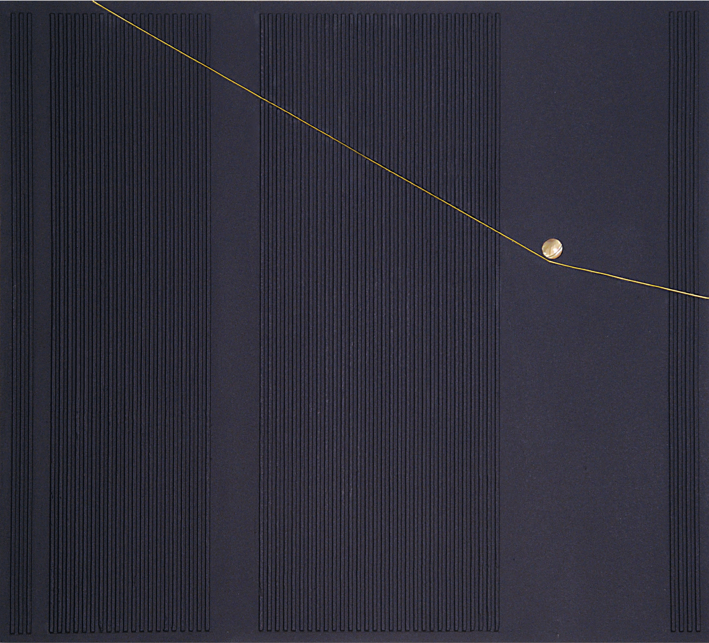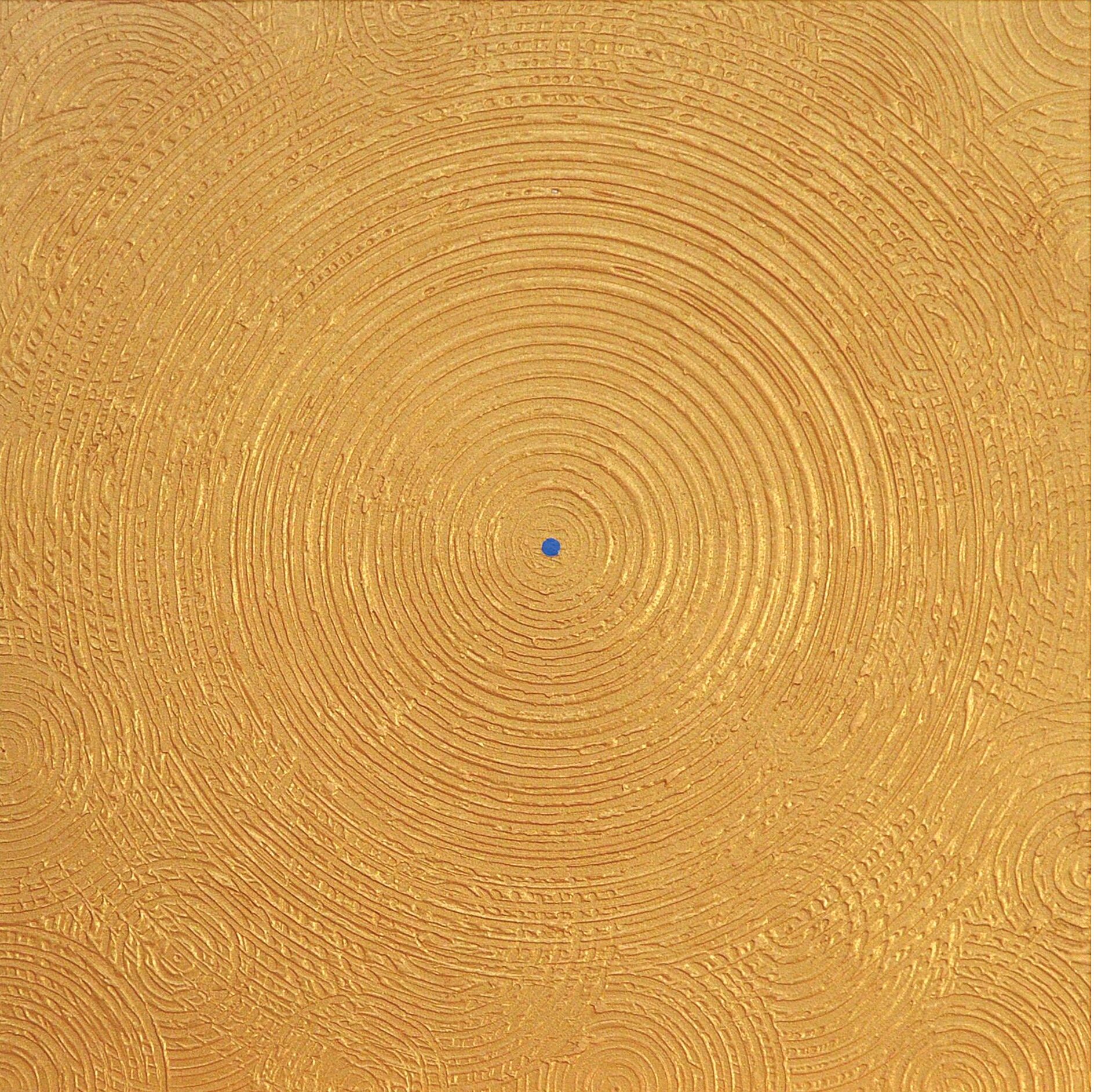 The 2000s represent another period of creative energy, were Zappettini created the series La trama e l’ordito (The Weft and the Warp), in which Wallnet – an industrial material – appears for the first time and subsequently leads him to the production of Trame (Wefts). Other relevant series are Il codice degli dei (The Code of the Gods), La Luce Prima (The First Light) – in which colour is in dialogue with blacklight – and the recent Con-Centro, where the circular motif becomes the symbol of the search for our “inner centre”. Zappettini envisions a “journey” into self-awareness using gold as a symbol of God, the absolute, and the Sun.