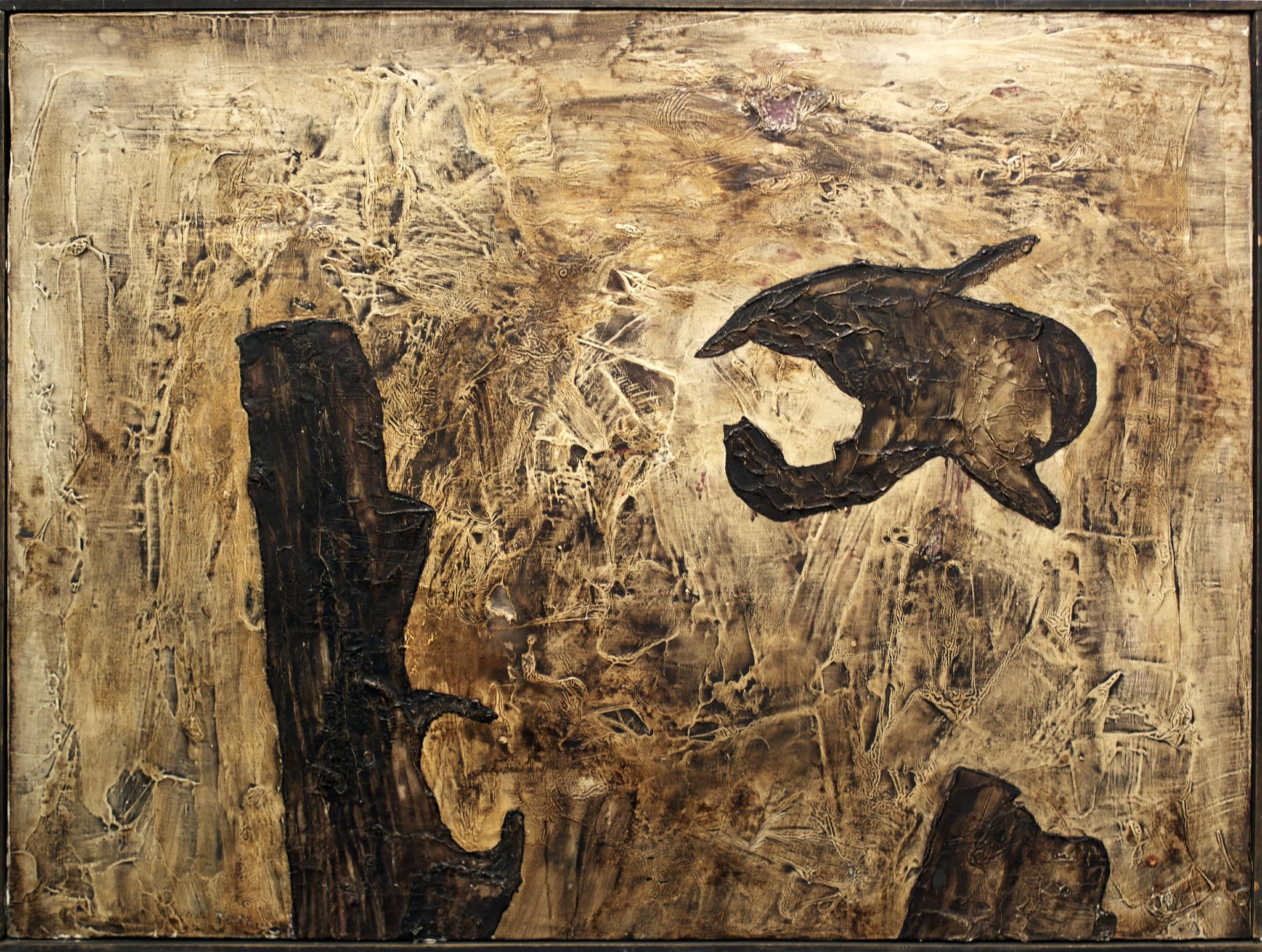 He began to regularly associate with the Milanese art scene. At this time, the most advanced organisations were the Spatial Movement, promoted by art dealer Carlo Cardazzo and centred around Fontana, the leading exponents of which were Roberto Crippa, Gianni Dova and Cesare Peverelli; the Nuclear Movement, founded by Enrico Baj and Sergio Dangelo, who launched publication of the magazine Il Gesto in 1955, and the bookshop/gallery opened in 1954 by Arturo Schwarz, with exhibitions of Marcel Duchamp, Max Ernst and Kurt Schwitters, Surrealism and CoBrA, amongst others.