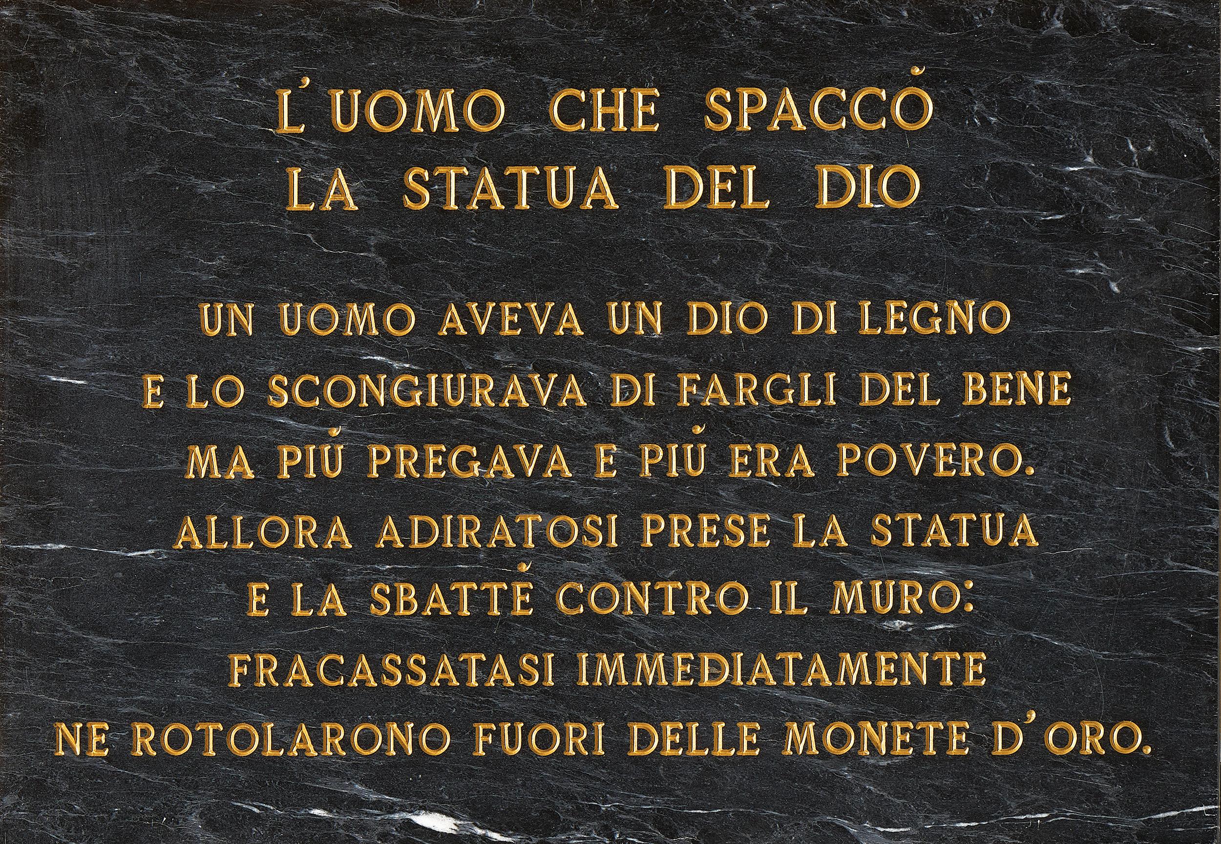 Simultaneously, Salvo produced marble tombstones on which he engraved words or phrases, such as Idiota and Respirare il padre. It is, however, important to note, that despite those works belong being created within the context of Arte Povera, their monumental and archaizing connotations move beyond the movement, revealing a unique viewpoint, foreshadowing what we are to see in his future works.