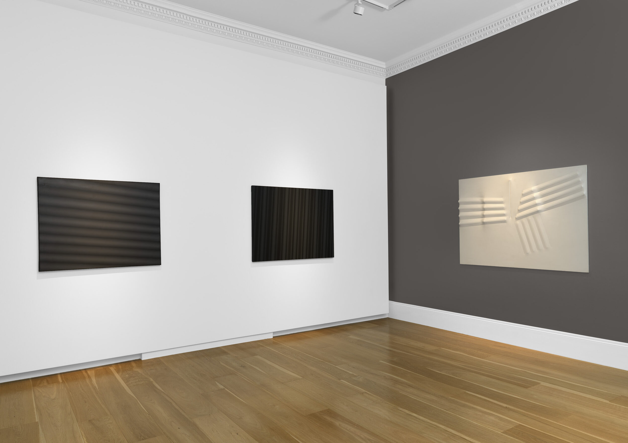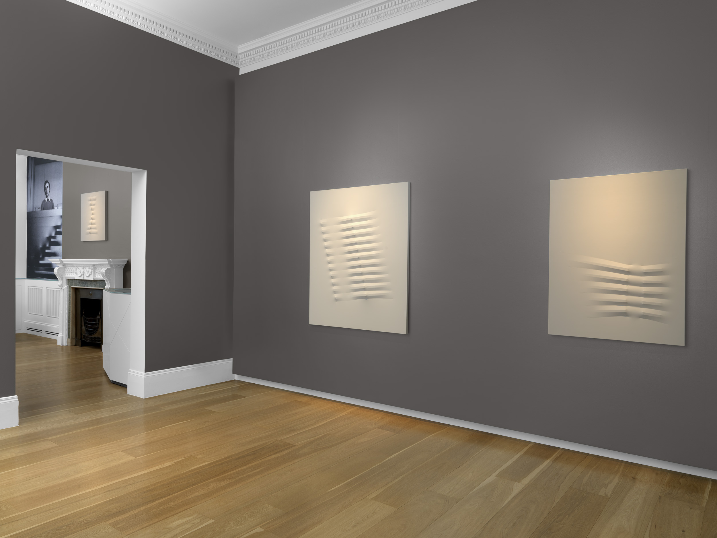 This intimate display will showcase pioneering abstractionist Lee Seung Jio’s works, specifically his Nucleus series, where cylindrical “pipe” forms challenge the notion of opticality and played a pivotal role in defining Korean Modernism. These works will be exhibited alongside Agostino Bonalumi’s “extroflexions”, which seek a new dimension of space through monochromatic shaped canvases, each named after a specific colour. The exhibition will adopt this monochromatic theme, showcasing several of Bonalumi’s works in white, such as Bianco (1973), juxtaposed with Lee Seung Jio’s dark grey and black Nucleus works, like Nucleus 73-18 (1973).