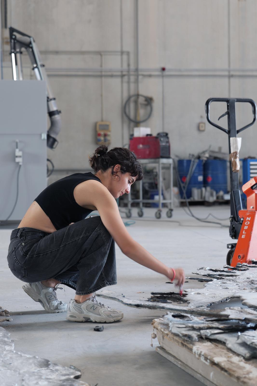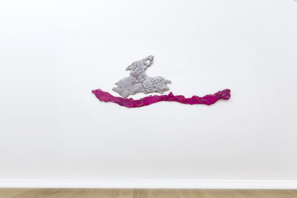 Modellata sulla base di una mappa geologica del Vesuvio conservata presso l’Archivio Russo Somma e ispirata alla storia della nonna dell’artista, costretta a migrare e a sposarsi dopo l’ultima eruzione del 1944, “è un monumento detritico e mobile alle nostre madri meridionali, umane e non umane”, afferma l’artista.