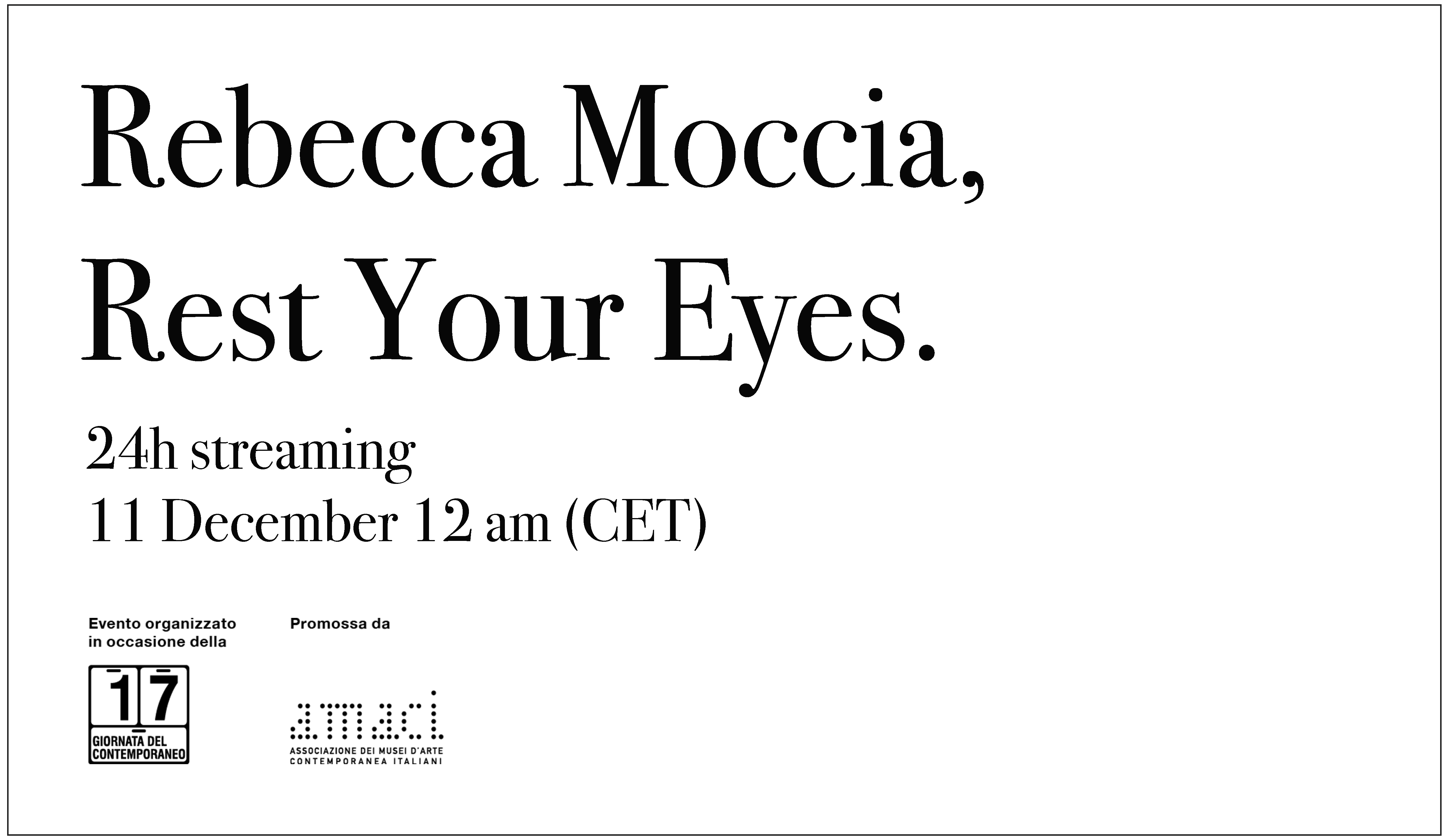 On the occasion of the 17th edition of the Giornata del Contemporaneo (“Contemporary Day”) promoted by the Association of Italian Contemporary Art Museums (AMACI), Rest Your Eyes by Rebecca Moccia will be accessible on Saturday 11 December for 24 hours. This is the video edition of the homonymous site-specific installation, which will be on display until 7 January 2022 at the Italian Cultural Institute in Brussels in collaboration with MAMbo – Museum of Modern Art Bologna.