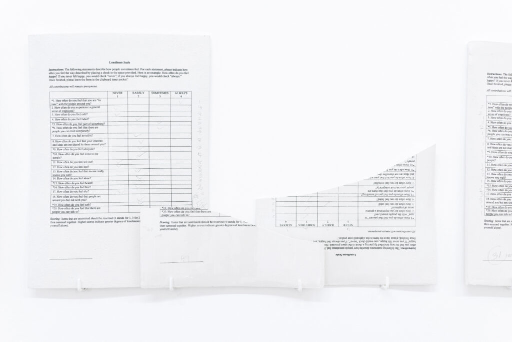 Departing from an exploration of the Ministry of Loneliness – established in 2018 in the United Kingdom and replicated in 2021 in other countries such as Canada and Japan –Ministry of Loneliness is a multimedia installation that develops a reflection on the political and social structures that shape the emotional state of loneliness and its perception in contemporary society.